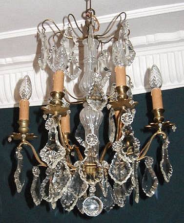 early 20th century 6 light chandelier with scrolling brass arms and tiny