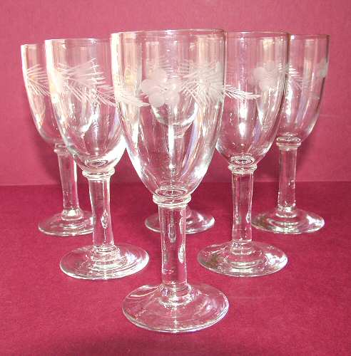 Fabulous set of six antique glasses, all beautifully engraved with stylised foliage and in excellent condition.