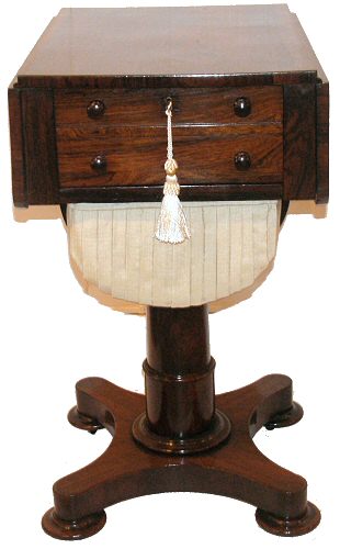 sewing box, finished in pleated cream silk. The base is of quadrofoil outline,