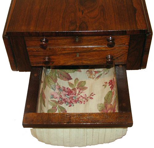 drop flaps which lift to extend the tables size. Below is a pull out drop well