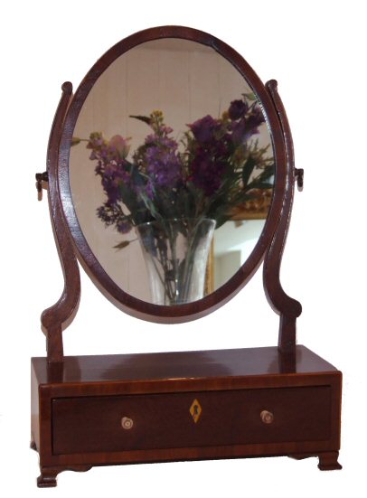 Particularly small Georgian mahogany dressing table mirror Circa late 18th Century, a George 111 single drawer swing mirror