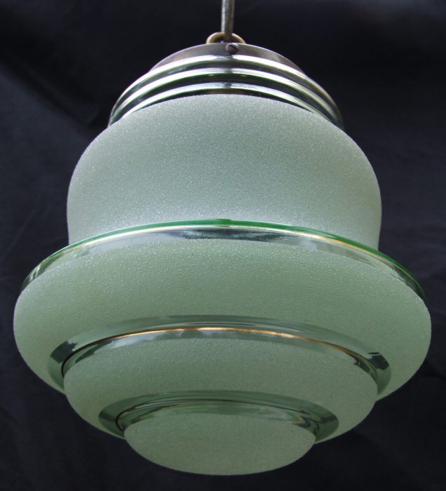 Gorgeous Art Deco Sugar Frosted Green Ceiling Light |