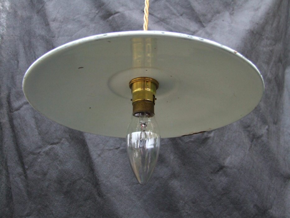 A lovely small and discreet enamel green ceiling light, a few small marks to the enamel commensurate with age but nothing detremental. Full of character and charm, these are ideal for low ceilings or areas where you want to add just a little more light discreetly.