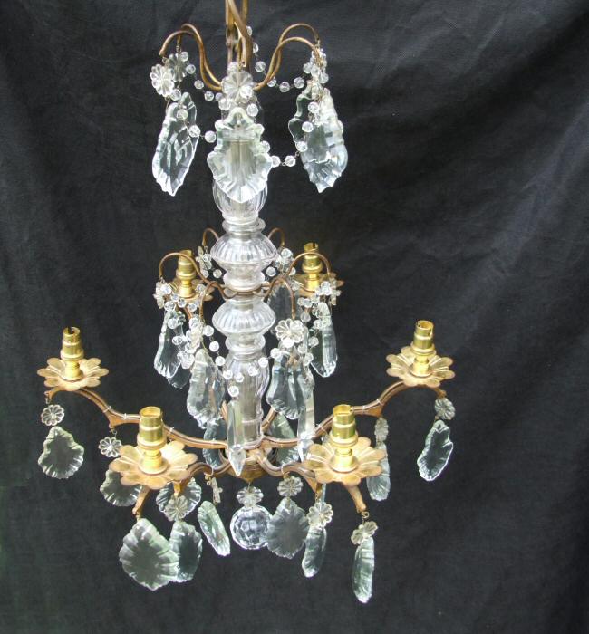Circa 1900 A 6arm Brass and Crystal Chandelier |