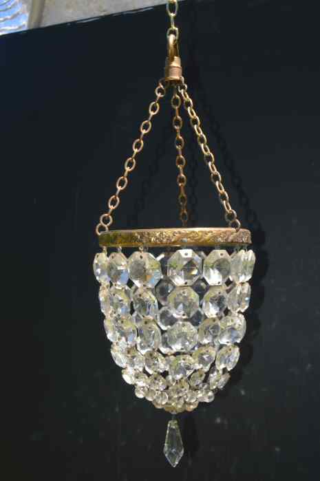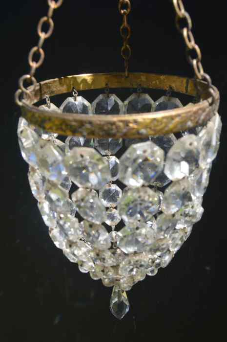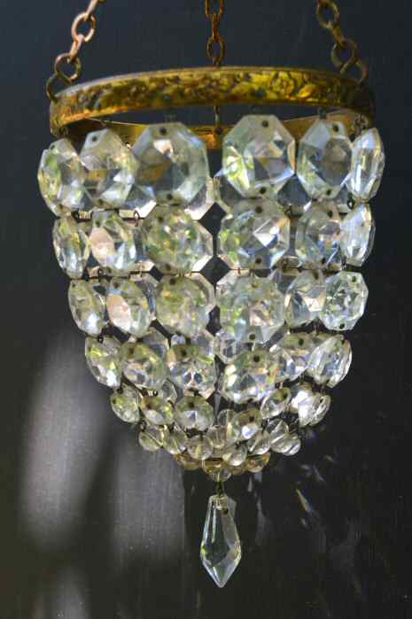 brass frame is dressed with gorgeous graduated octagonal faceted glass