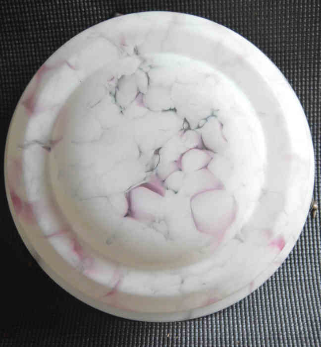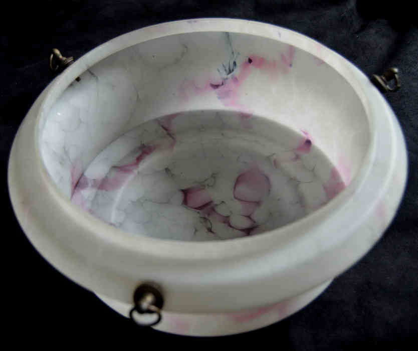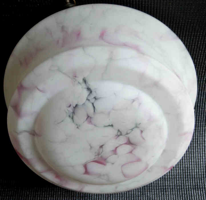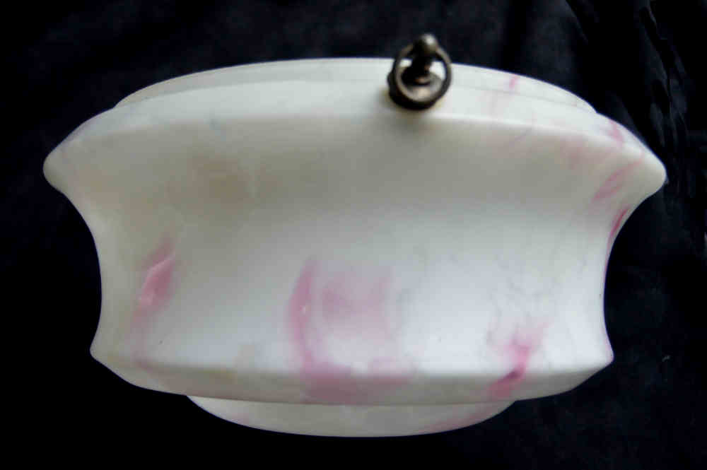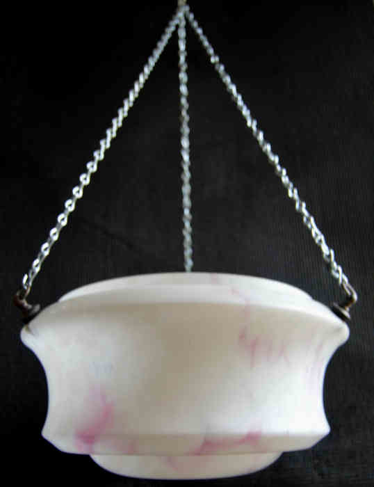 Art Deco Mottled Pink Ceiling Light A pretty mottled pink deco lampshade dating to 1930, comes with 3 hooks and chain for hanging and will be rewired and ready to install. Dimensions are of the shade only, and dont include the chain. Width 12" Height 5.5" Ref CHA3024 £95 Delivery £12
