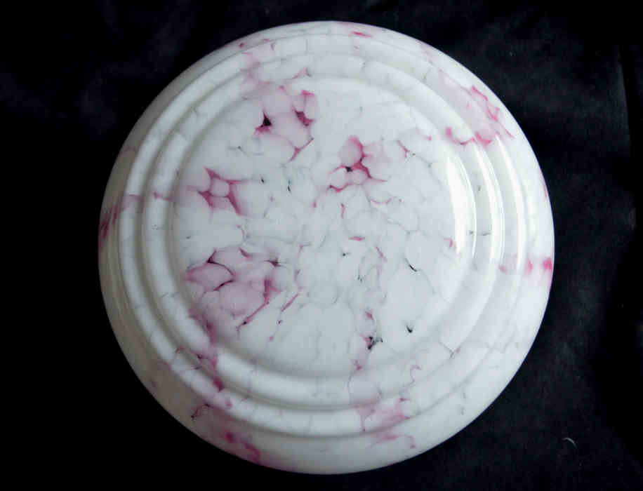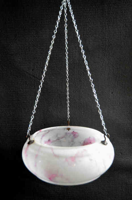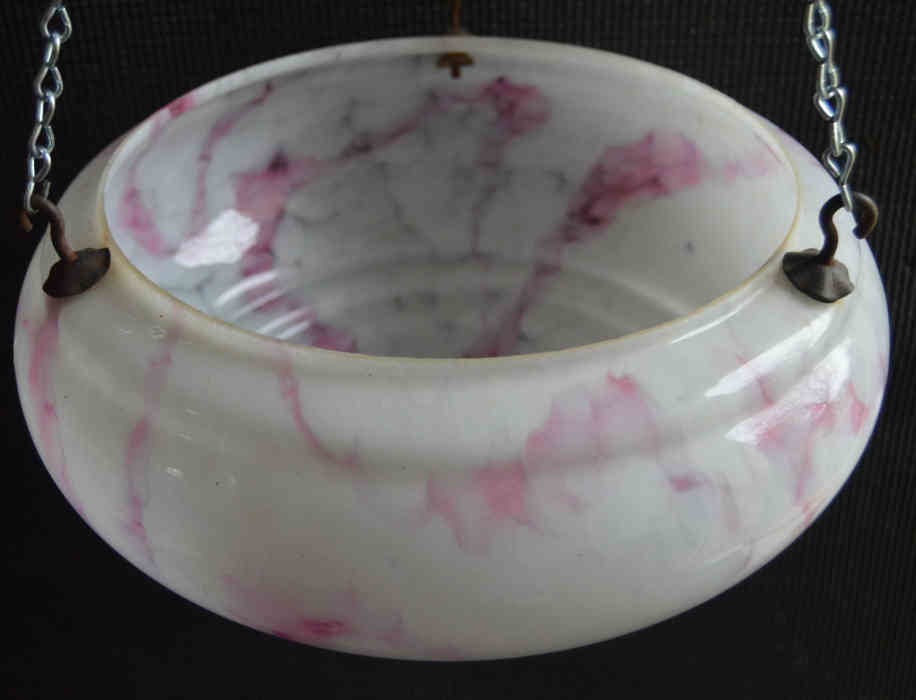 Art Deco Mottled Pink Ceiling Light A pretty mottled pink deco lampshade dating to 1930, comes with 3 hooks and chain for hanging and will be rewired and ready to install. Dimensions are of the shade only, and dont include the chain. Width 12" Height 5.5" Ref CHA3027 £95 Delivery £12