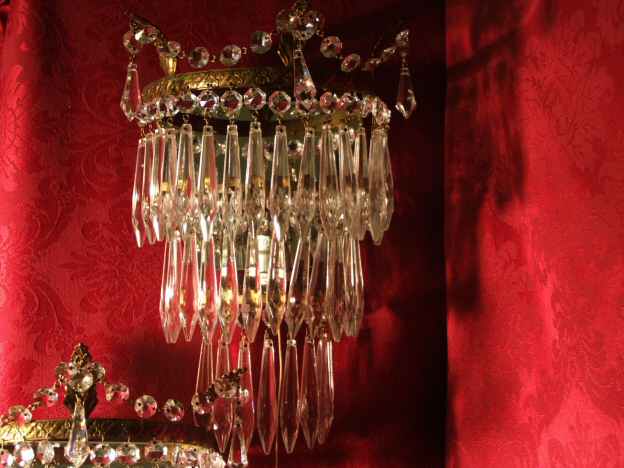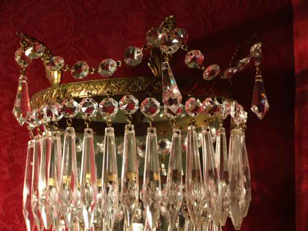 top having 3 gilt leafs with extra decorative swag of crystals dressing