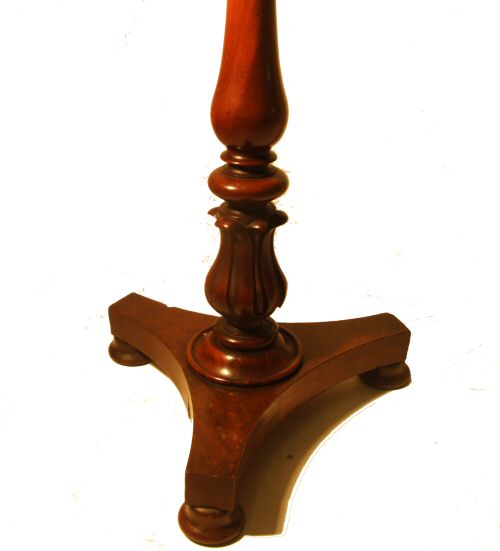 W1Vth Standard lamp A beautiful W1vth standard lamp, was originally a pole screen many years ago but has been converted well into a standard lamp. The lobed and reeded stem is raised on a trifoil base with pretty bun feet. Price includes rewiring and shade (not new but in overall good condition). Price £395 (Ref:CHA845)