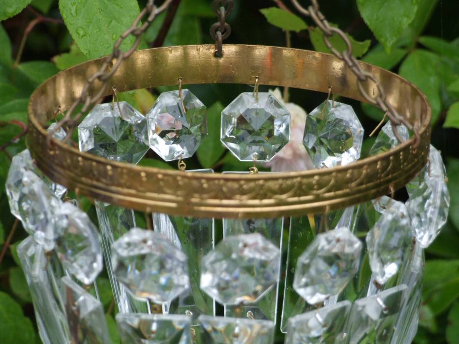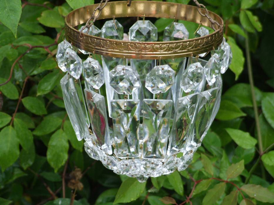 rainbow, held in a bag shape by pretty glass rosette to the base.