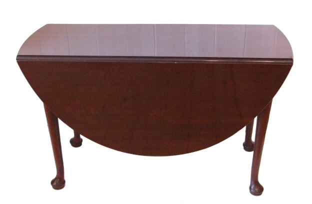 Substantial mahogany Georgian Drop Leaf Dining Table A beautiful solid mahogany drop leaf dining table dating to 1750. This George 11 table is extremely heavy with a solid top which opens via a gate leg action to make a sturdy dining table to seat 4. Standing on pad feet this is elegant and useful. Width 48" Length when open 54" Closed 16.5" Height 29" £995 (Ref :D171) Email Us for a delivery quote : Click Here