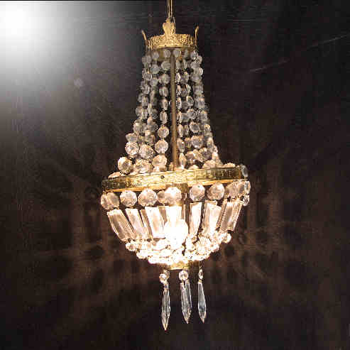 A beautiful Italian Empire Style Gilt brass and prism chandelier dating