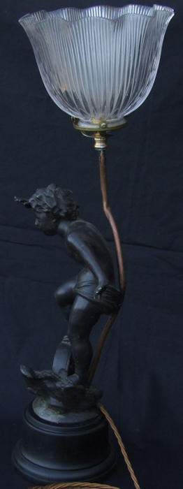 Spelter Cherub table lamp with indistinct signature. This attractive