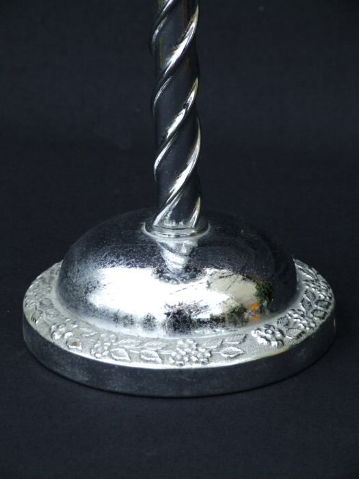 Art Deco Chrome Table Lamp An Art Deco Chrome Table Lamp the circular base with leaf and floral decoration has slight wear from which an elegant twist stem supports the pretty soft cream globe shade. The lamp comes rewired and ready to grace your home.