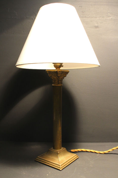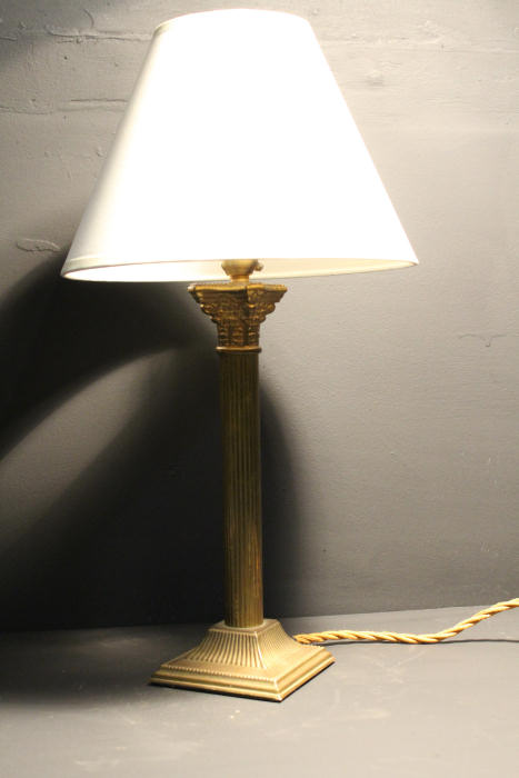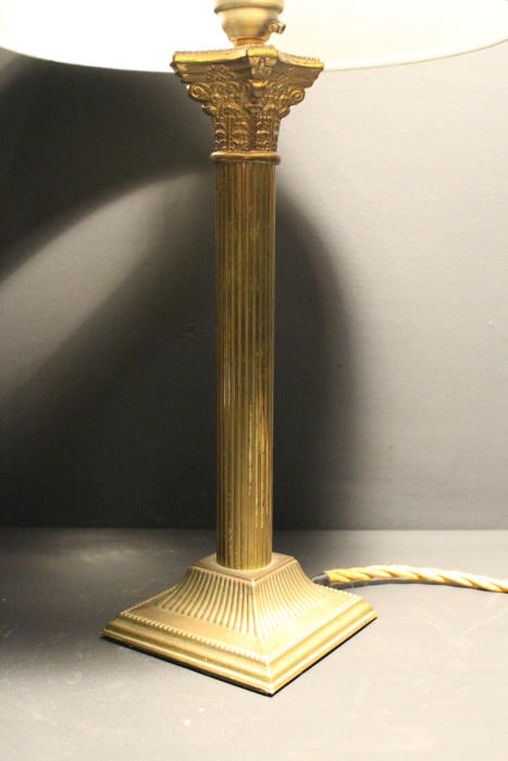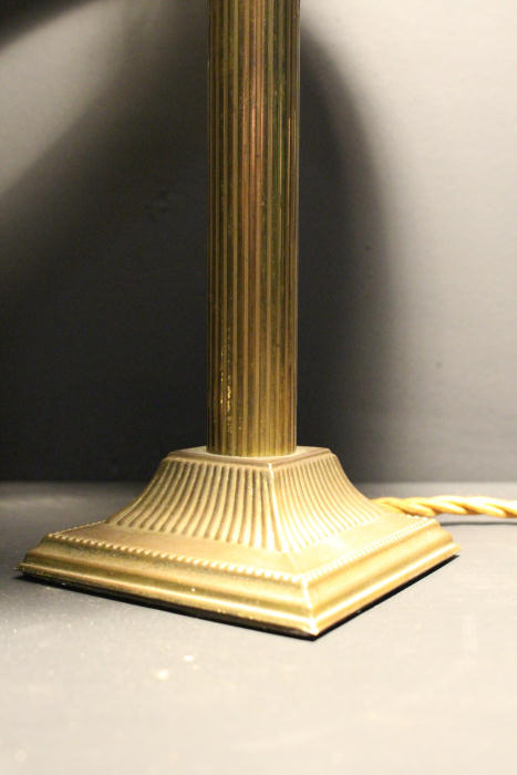 brass table lamp with reeded base and stem. Rewired with a soft antique