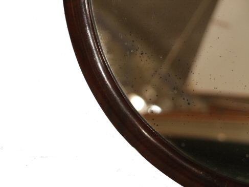 A lovely Victorian Circular mahogany wall mirror slight speckling to the glass and lovely figured mahogany frame.