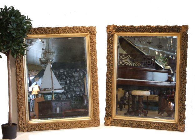 Pair of Matching large Victorian Florentine style mirrors A large matching pair of rectangular mirrors dating to Circa 1880 in the Florentine style. The frames with lovely accanthus scrolling detail in bright gilt, the original mirrors in good condition with bevelled edges. Extremely hard to find pairs of mirrors and these have the added benefit of being an excellent size, perfect for a pair of alcoves. Further photos to follow...