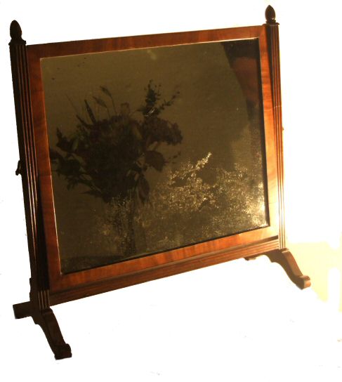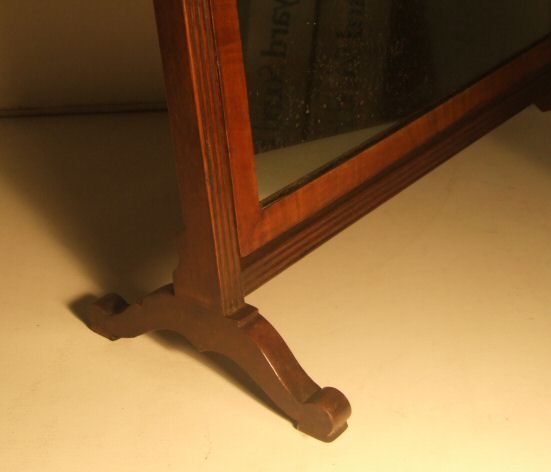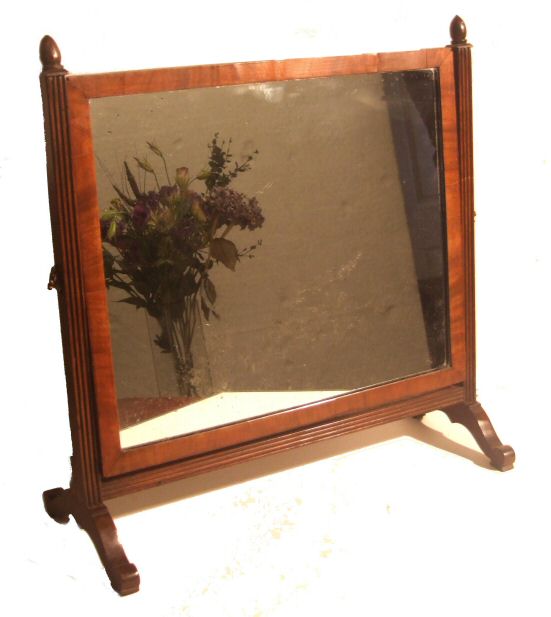 Edwardian mahogany rectangular dressing table mirror An Edwardian mahogany rectangular dressing table mirror, with reeded upstand on pretty shaped feet which make this a lovely sturdy mirror. Tilts nicely and holds in place as it should. A great mirror perfect for any size chest of drawer. H 22" Width 21" Depth 8.5" £120 (Ref:MIR269) Email Us for a delivery quote : Click Here