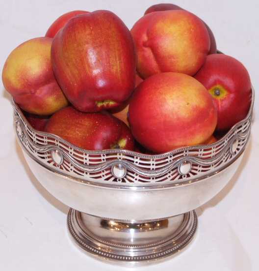 Attractive Silver plated punch/fruit bowl A very attractive silver plated punch/fruit bowl, with lovely fine fret work to the top and slightly curved top edge. Width 8.75" Width 6.5" Price £98 (Ref :MISC118) Email Us for a delivery quote : Click Here