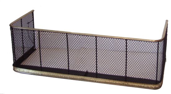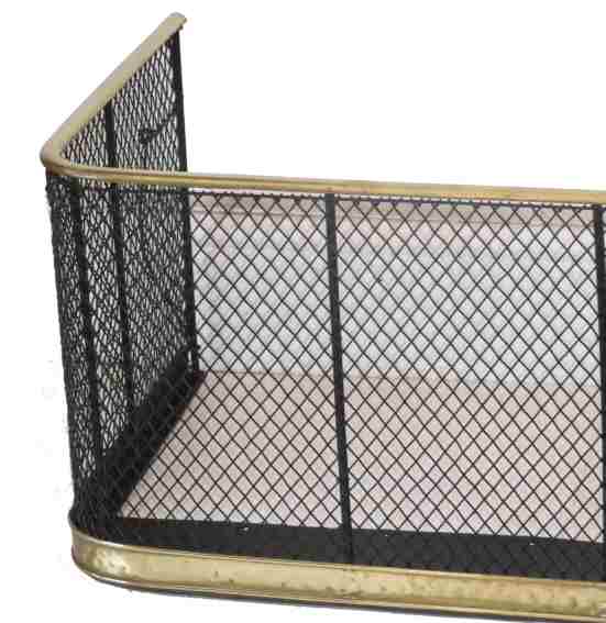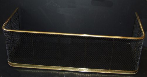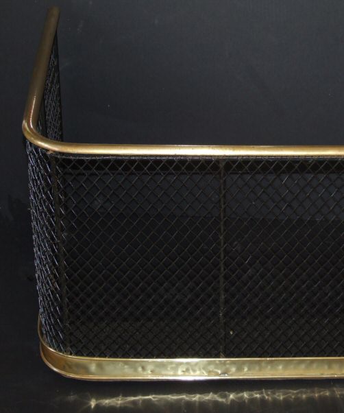 A Victorian Nursery Fender In lovely original condition, Circa 1850, this large Early Victorian brass and wire fender interlaced wire (black gloss) surmounted by brass, the whole of "D" shaped outline, with original back plate in good condition, the brass having been buffed to a high shine to complement the gloss black interlaced wire. Width 48" Height 18.5" Depth 15" Price £395