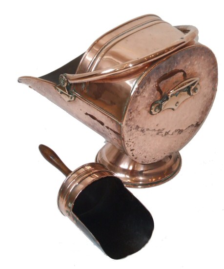 Georgian copper coal skuttle and shuvel A lovely example of a copper coal skuttle with original copper skuttle dating to the 19th century, having been polished this is now in lovely condition and ready for use.