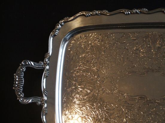 WMA Rogers Silver Plated Tray A beautiful decorative silver plated tray by WMA Rogers highly polished with substantial Victorian style detailing to the surround and handlles, the centre section with floral leaf work decoration. A heavy and solid tray of useful proportions. Width 24" Depth 13.5" Price £98.00 (Ref:MISC152) Email Us for a delivery quote : Click Here