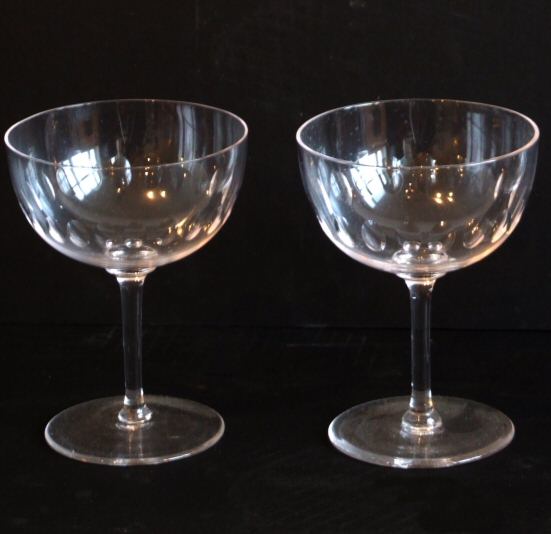 A lovely set of 8 matching antique glasses dating to 1930 in perfect condition, ideal for champagne!