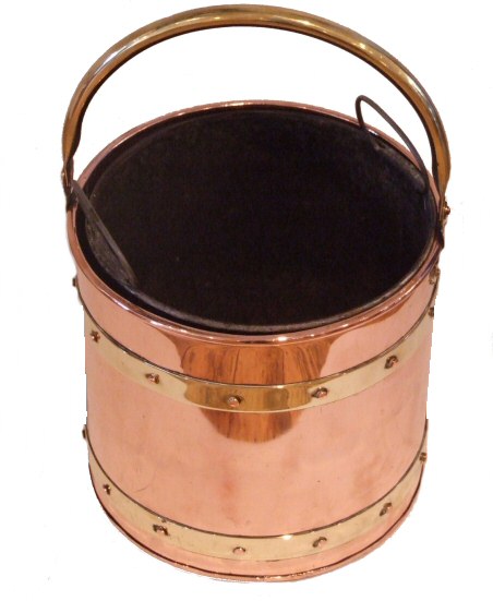 Georgian copper coal bucket In fabulous condition this woderful Georgian copper coal bin of cylindrical form has the original liner which has handles to allow it to be removed easily, the brass handle is complemented by further brass embelishment to the body of the bucket. Fully buffed and in beautiful original condition. Lovely! Width 11" Depth Height 10.5"