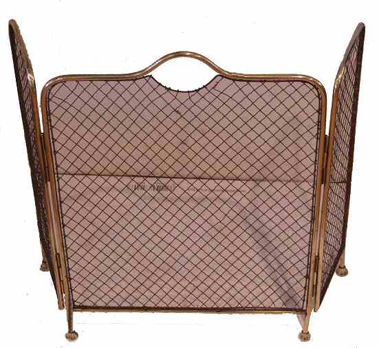 Victorian 3 fold brass fire guard A lovely Victorian brass fire guard in 3 sections on bun feet. Extremely useful and practical, in perfect condition, fully buffed with original mesh. The brass handle at the top making this easy to move in and out of place. Height 21" Width 15" central section