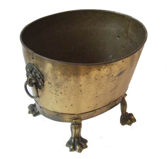 Edwardian Oval Large Brass Log Bin Large enough to double as a wine cooler this lovely antique brass log bin is oval in shape with well defined lion mask handles either side raised on lion paw feet. A lovely item in excellent condition, will be polished prior to delivery. Width 17" Depth 15" Height 14" Price £395 Ref:MISC224 Email Us for a delivery quote : |