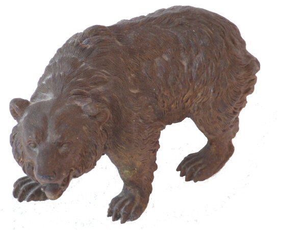19th Century Fine Quality gilded bear Dating to the 19th Century this beautiful gilded brass bear has lovely dark patination all over its well defined body. The fur, feet, claws and open mouth all of excellent detail make this a wonderful piece. The bear standing with open mouth in full roaring mode simply oozes quality. Width 11.5" Height 20.5" Price £225 (Ref:MISC230) Email Us for a delivery quote : Click Here