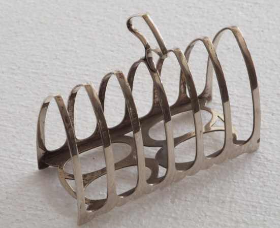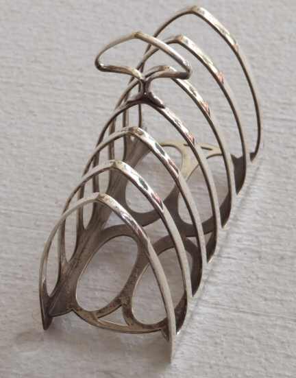 Large Silver plated toast rack Dating to the early part of the 20th Century this lovely large toast rack has 6 sections and is of beautiful design. A beautiful piece. Height 5.5" to top of handle Width 6.5" Price £42 (Ref :MISC234) Email Us for a delivery quote :Click Here