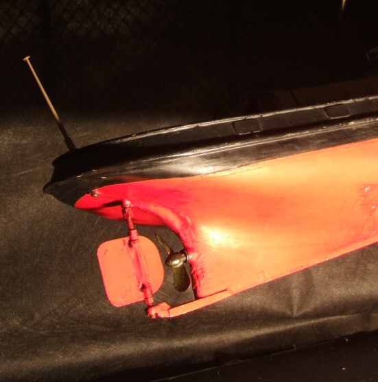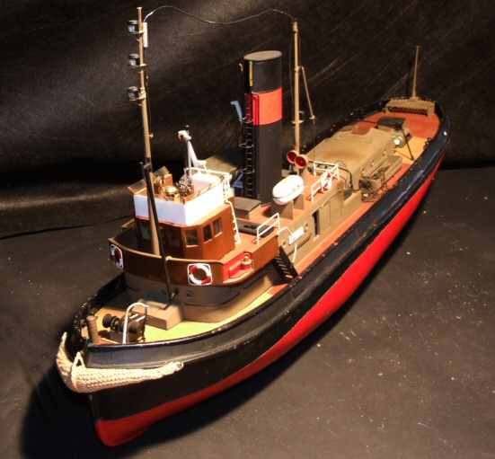 Charming model of a tug boat "Nina" 111 A charming model of a tug boat in red and black livery features wonderful character and detail having a very shapely counter stern with moving rudder and propellor. The super structure features numerous portholes, life rings, winches, stairs etc. The whole surmounted by a large angled black and red chimney stack. Can also be used by remote control although we are selling this as a model only) Length 29" Height 14" £395 |