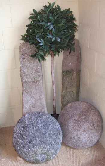 Pair of granite saddle stones A good pair of granite saddle stones with long bases that give extra strength and support. The circular tops measuring 22" wide and the supports being 23". Great garden feature and not too large so ideal for any size of garden. Width 22" Height 27" £350 the pair (Ref : MISC639) email us for delivery quote : Click Here