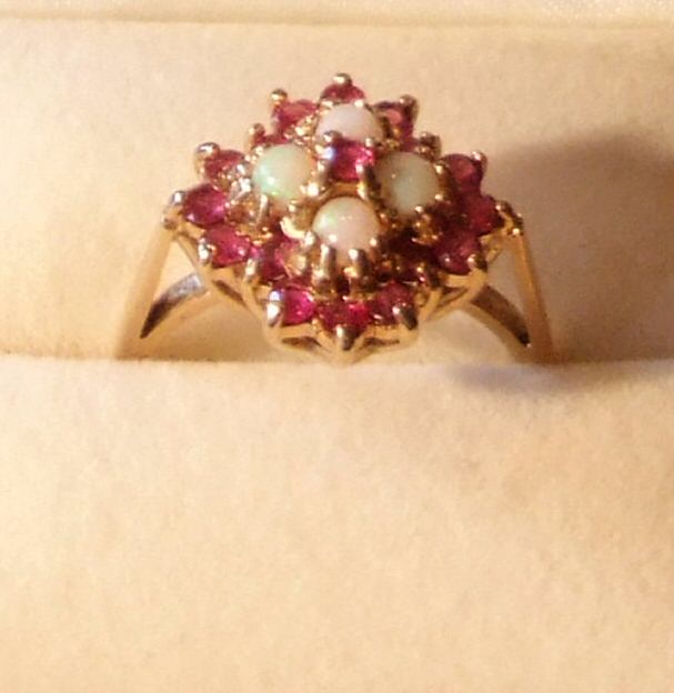 A beautiful fairly large ruby and opal gold ring. Certain to make an impression.