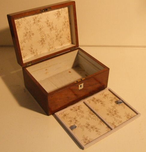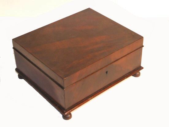 Victorian mahogany jewlery box A flame mahogany Victorian jewlery box standing on bun feet with fully working lock and key. The lid opens to reveal a lift out section which reveals more storage below. Perfect Gift for someone special. Width 9.5" Height 5" Depth 8.5" Price £175 (Ref:MISC727)