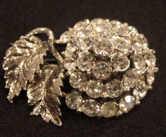 Vintage floral diamonte brooch