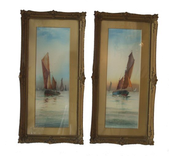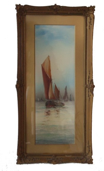 Pair of 19th Century watercolours of working sailing boats A lovely pair of 19th Century watercolours of working sailing boats of good definition signed GM, Garman Morris dating to circa 1899-1902. One with the hand written inscription "Boats coming in" and the other "Evening off the East Coast". These paintings are in lovely condition and held within decorative plaster frames. Width 10" Height 20" Price £395 (Ref:MISC229) Email Us for a delivery quote : Click Here