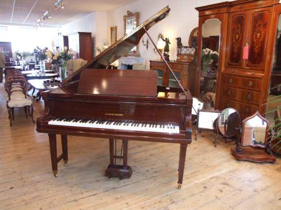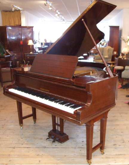 Zeitter and Winklemann of Braunschwieg Germany A beautiful boudoir grand piano by Zeitter and Winklemann of Braunschwieg Germany. This highly desirable piano is slightly larger than a baby grand and stands on 3 pairs of double legs with highly polished brass casters. In excellent original condition this piano has been well cared for and originally was supplied by Harrods of London, number 62067, there is a label to the side of the piano and also on the front lid veryfying this. The registration number of 27913 can be found by the piano frame and dates the piano (tbc ). Internally the piano is in lovely condition with hammers all good, strings and felts all in excellent condition. Being iron framed and overstrung this piano is delivered in concert pitch and is a pleasure to play. It has a good feel and touch and is very responsive. A piano to see you right the way through your grades is you so desire. Length 63" Widtdh 58" £2450 (Ref: PIA16) Email Us for a delivery quote : Click Here