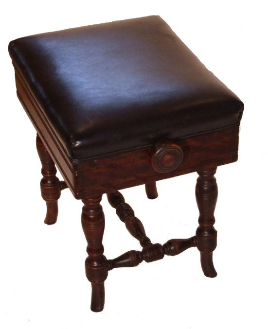 Edwardian Mahogany adjustable piano stool A fully adjustable Edwardian mahogany piano stool on beautiful slender legs with stretcher for extra support. The 2 knob handles either side turn to move an internal mechanism which raises and lowers the seat. The seat covered in a black vinyl which is extremely practical. Presented in full working order and ideal for any age of piano player. £350 |