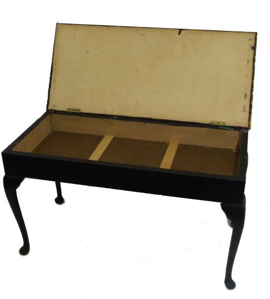 Edwardian ebonised duet stool A pretty Edwardian ebonised piano stool, standing on cabriole legs this lovely duet stool has a padded seat which opens to reveal storage space for music books. The seat will be reupholstered in the price, if you are quick you are welcome to direct me in the choice of material used for the top coat. dimensions tbc £325 |