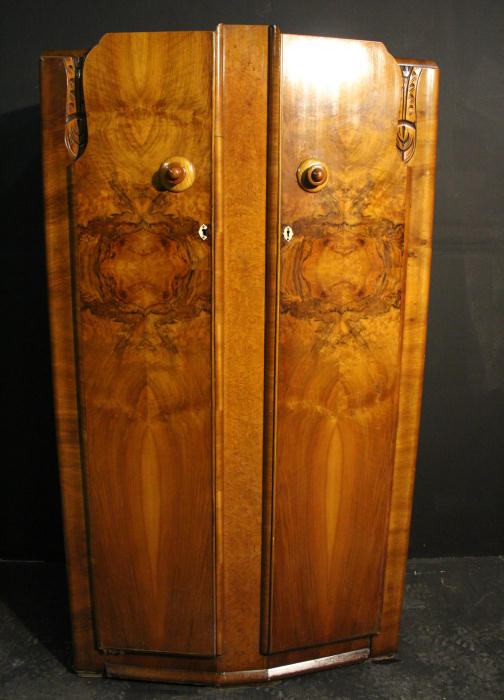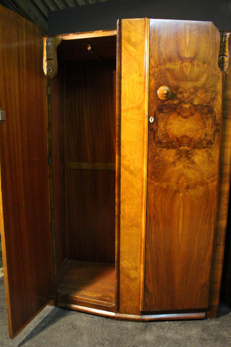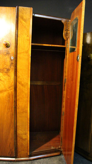 Large Art Deco 2 Door Figured Walnut Wardrobe |