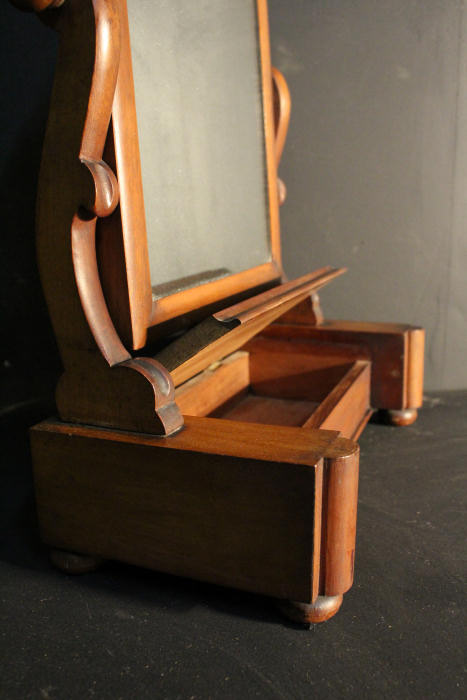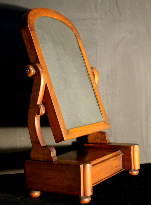 Victorian Mahogany Dressing Table Mirror Victorian Mahogany dressing table mirror with hinged jewellery box, bun feet. Fully adjustable, tilts nicely and stays firmly in place. Mirror has foxing commensurate with age. Lovely item. Pefect for a gift! Height 20" Width 15" Depth 7" Ref SAF90 Price £115 Delivery £10