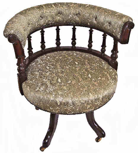 Attractive Mahogany Victorian swivel desk chair standing on original casters, the seat swivels on the base and the whole has been stripped to a bare frame and all the joints checked and clamped as necessary prior to French polishing and reupholstering, including re springing. Provided in beautiful condition and ready to use. SOLD (Ref : ST32) Email Us for a delivery quote : Click Here