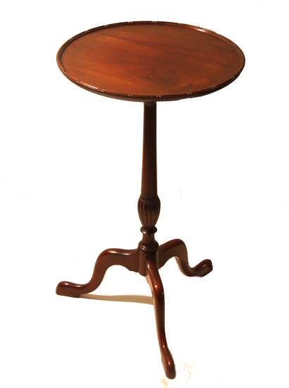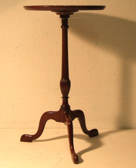 A lovely tall and slender mahogany Edwardian wine table with circular top raised on slim stem and 3 pad feet.