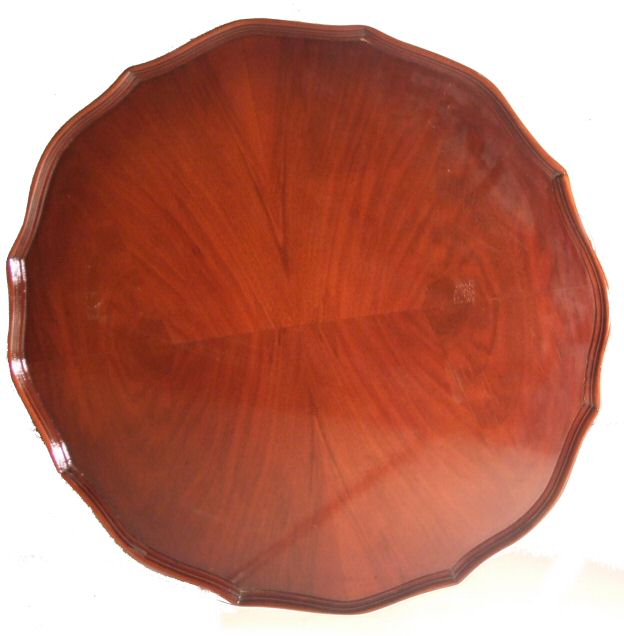 A beautiful Edwardian mahogany circular coffee table with pie crust edge on 4 cabriole legs and pad feet.