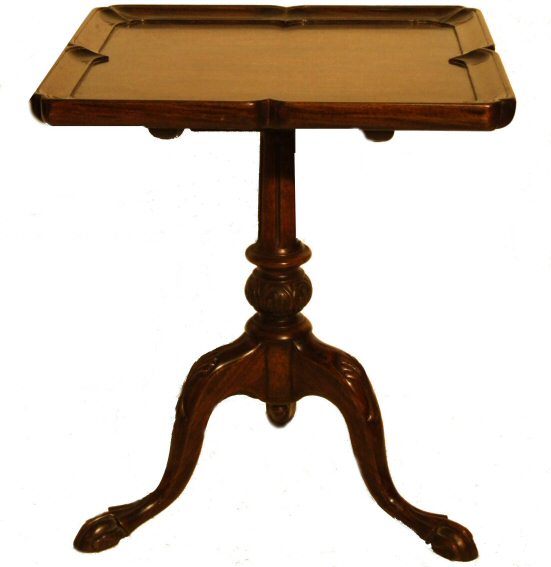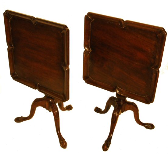 Pair of matching Georgian Revival mahogany tilt top tables Circa 1900 a matching pair of Georgian revival tripod tables. The beautifully carved tripod bases support the tilting tops which themselves feature a moulded edged giving a shallow rim to their borders. Sturdy and of a useful size and height, would be equally ideal either end of a Chesterfield or either side of a bed as nightstands. Extremely hard to find as an exact pair so be quick! Width 18.75" Height 22.5" Price £1275 (Ref:TAB107) Email Us for a delivery quote : Click Here