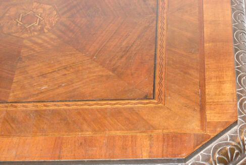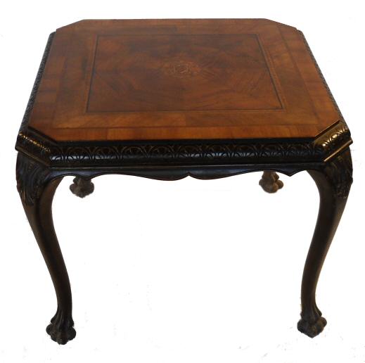 Stunning 1920 Continental inlaid coffee table A beautiful example of a mahogany inlaid coffee table dating to 1920, fantastic size and colour, lovely detailing to the feet. The top with beautiful inlay to the centre, surrounded by boxwood inlay and further decorative inlaid panels, the canted corners with carved detailing to the edge. The whole raised on well defined hairy paw feer. Very hard to find a piece like this. Width 29" Depth 29" Height 24" £495 (Ref:Tab126)