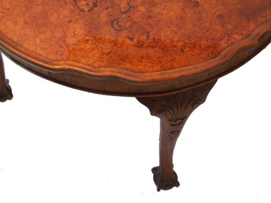 Stunning 1920/1930 Highly figured Burr Walnut Coffee Table Circa 1920/1930 this attractive highly figured burr walnut coffee table stands on 3 cabriole legs with ball and claw feet the circular top having pie crust edge and being a lovely blonde colour and very highly figured. A beautiful antique coffee table in excellent condition Height 17" Width 23" £395 (Ref :TAB84) Email Us for a delivery quote :Click Here