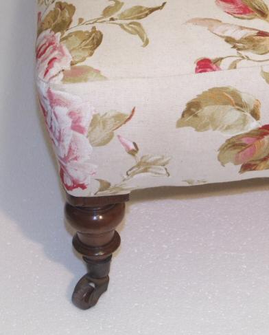 Victorian deep low nursing chair A comfortable deep low Victorian nursing chair reupholstered in a pretty floral material standing on turned legs with original casters. A good look for any bedroom. £275 (Ref:UPH103) Email Us for a delivery quote :Click Here